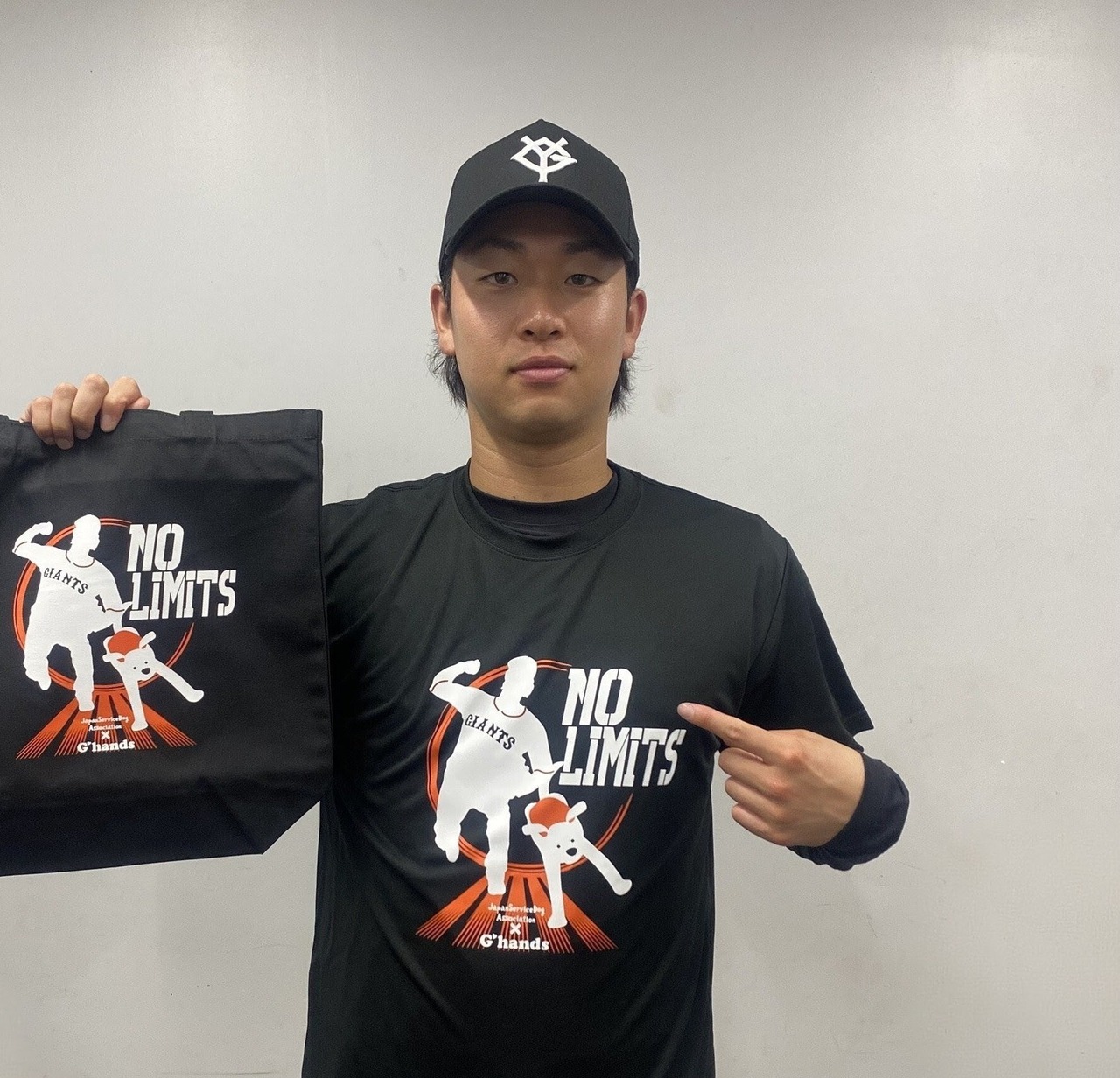2026シーズンのGIANTSチームスローガン「前進 ~GIANTS CHALLENGE~」に合わせて前に進んでいる勢いのあるイラストと、限界はない(=前に進み続ける)という意味の「NO LIMITS」が描かれており表のデザインには山﨑投手と介助犬のイラストが入っています♪